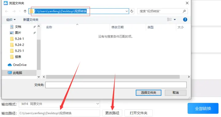 4、之后就需要调整视频转换后保存到电脑的位置了,为了方便寻找转换后的mp4文件可以把输出路径设置到桌面或者别的方便寻找文件的位置。