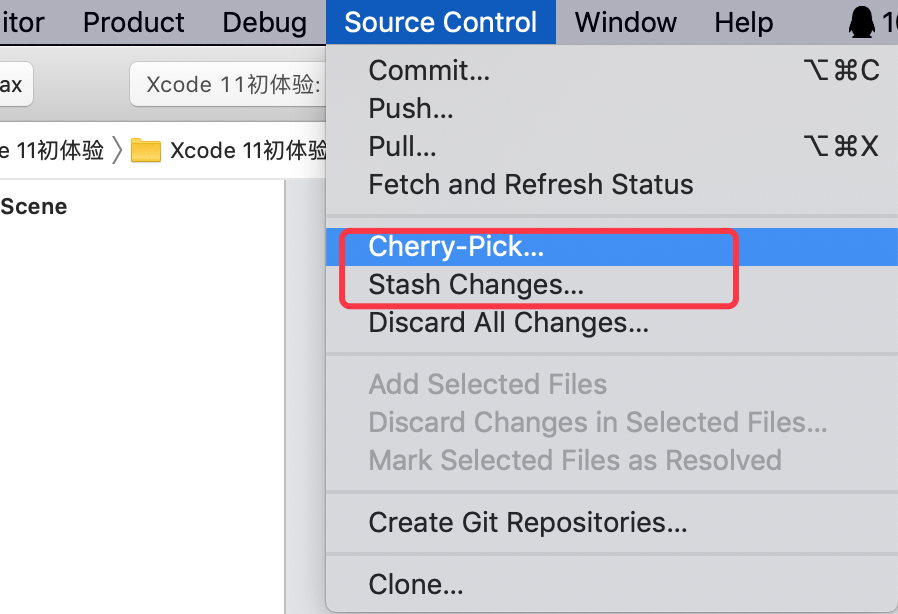 在Xcode 11中,新增了 Stash Changes 和 cherry pick 功能。