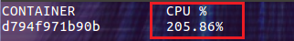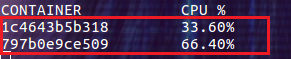 Cpu1 和 Cpu3 的负载都达到了 100%。 容器的 CPU 负载也达到了 200%: