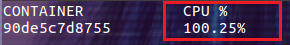 这次只有 Cpu1 达到了 100%,其它的 CPU 并未被容器使用。我们还可以反复的执行 stress -c 4 命令,但是始终都是 Cpu1 在干活。 再看看容器的 CPU 负载,也是只有 100%: