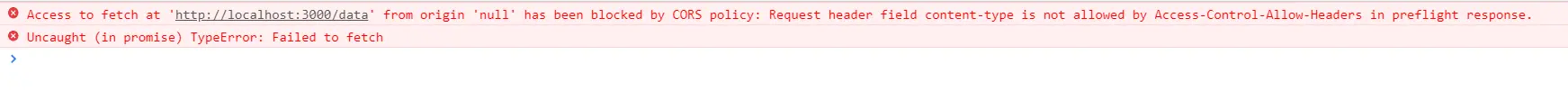 ②中设定返回数据的类型为json,此时需要把②的Content-Type设定在①中的Access-Control-Allow-Headers中,此时可以解决报错问题