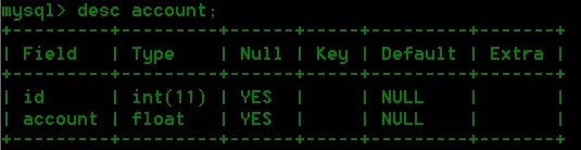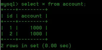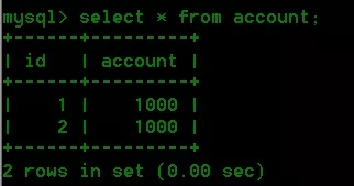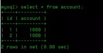 select * from account; 结果如下: