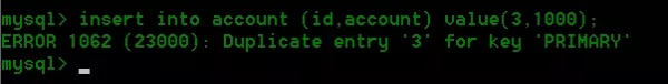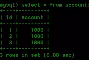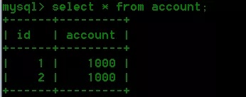 insert into account(id,account) value(3,1000);
