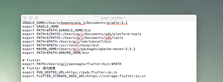 export PATH=/Users/qcl/packages/flutter/bin:$PATH