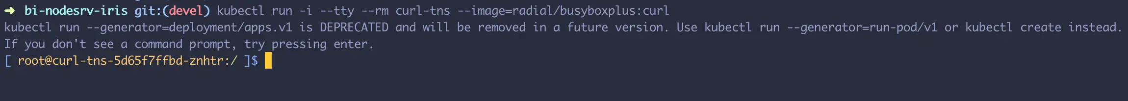 kubectl run -i --tty --rm curl-tns --image=radial/busyboxplus:curl
