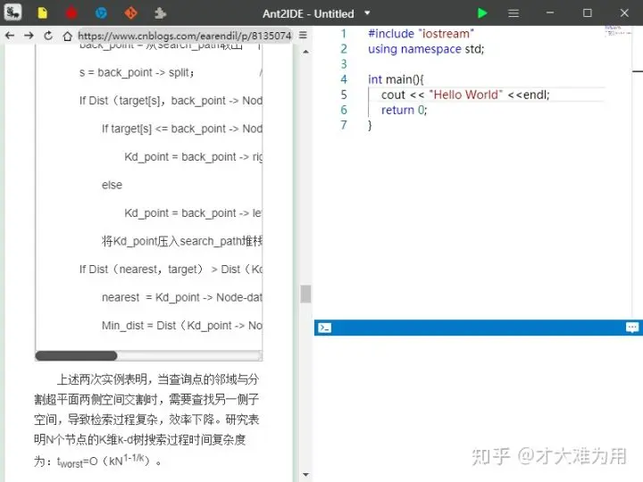 我在上大学之前就会编程,上大学之后,老师推荐的是codeblocks,私底下有些同学自己下Visual studio,或者Dev C++之类的,我也全试过,但是我发现一个问题:颜值高的IDE占用内存大(像Visual studio,clion),内存占用小的颜值低,而且有些IDE如果调试一段代码,必须新建一个工程才行,但作为一个学生,我们往往只是做一算法题,根本不用新建工程。鉴于对以上的不满,和自己的一些新想法,我决定造一个适合自己的IDE,也就是AntIDE。