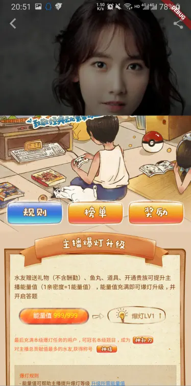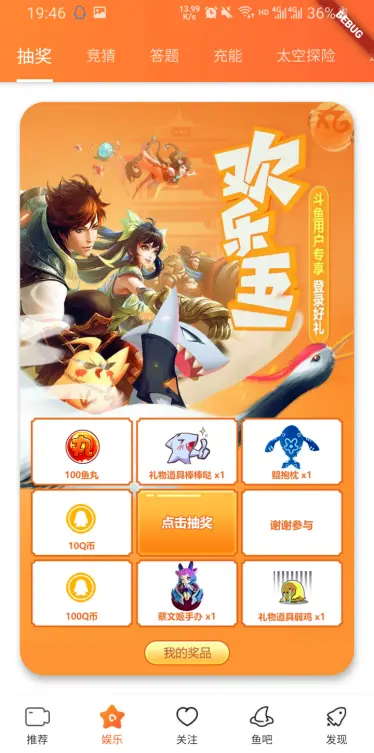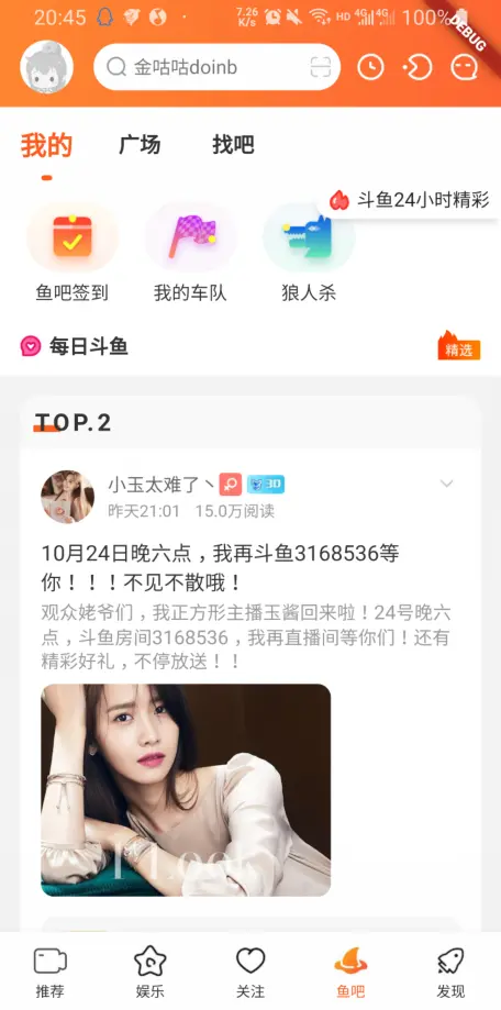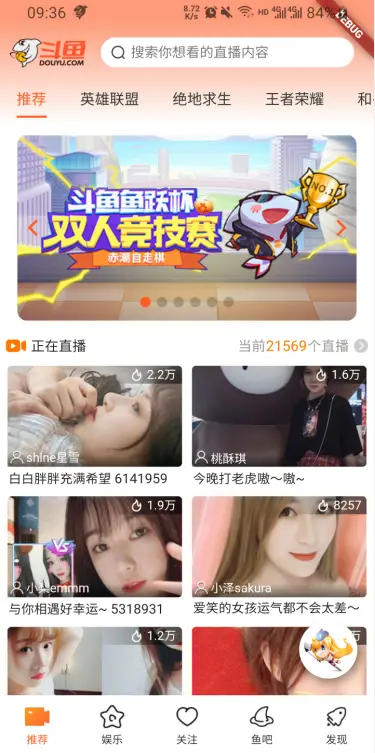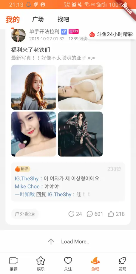 首页、娱乐为Material组件开发;直播间、鱼吧为纯自定义编写。