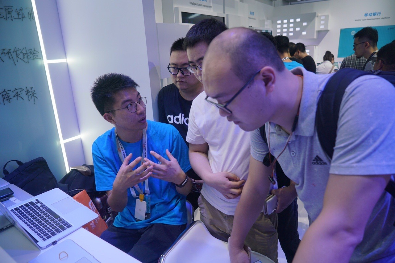 今天,2019阿里云栖大会在杭州云栖小镇开幕。蚂蚁金服的展区吸引到不少关注金融创新的“同道中人”。