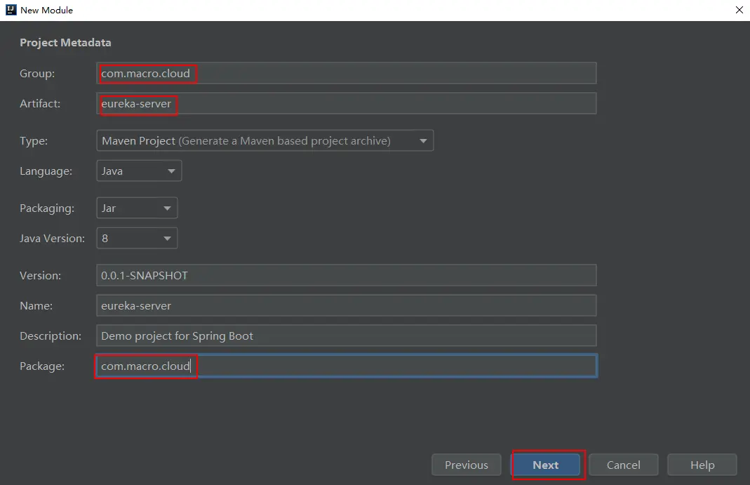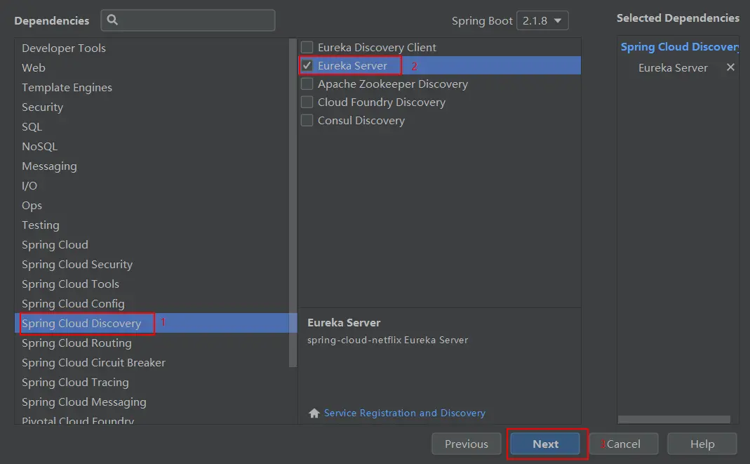 - 创建一个Eureka注册中心模块,并使用Spring Initializer初始化一个SpringBoot项目: