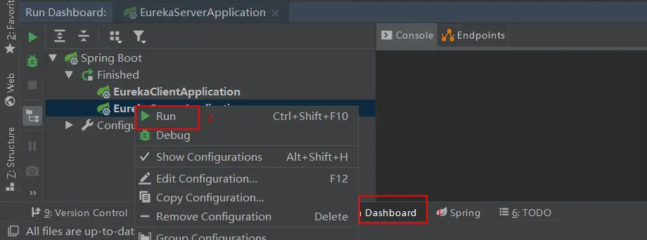 创建完成的SpringBoot应用,直接运行启动类的main方法就可以运行了。但是有时候我们会启动很多应用,为了便于管理,我们使用IDEA的Run Dashboard来启动。