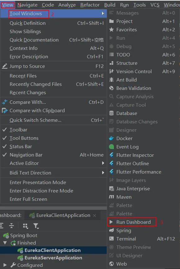 打开Run Dashboard的方式