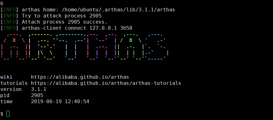 然后输入进程对应编号,进入Arthas的命令交互界面即可使用: