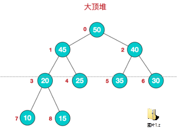堆是具有以下性质的完全二叉树:每个结点的值都大于或等于其左右孩子结点的值,称为大顶堆, 注意 : 没有要求结点的左孩子的值和右孩子的值的大小关系。