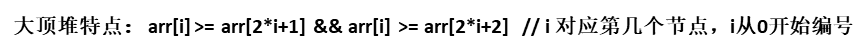 小顶堆:arr[i] <= arr[2i+1] && arr[i] <= arr[2i+2] // i 对应第几个节点,i从0开始编号