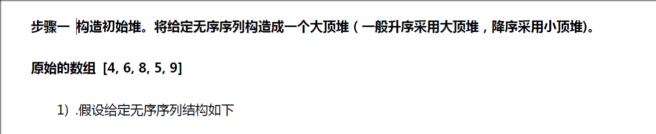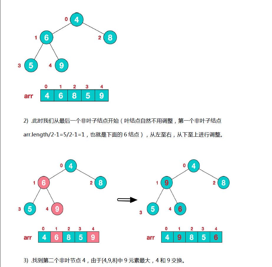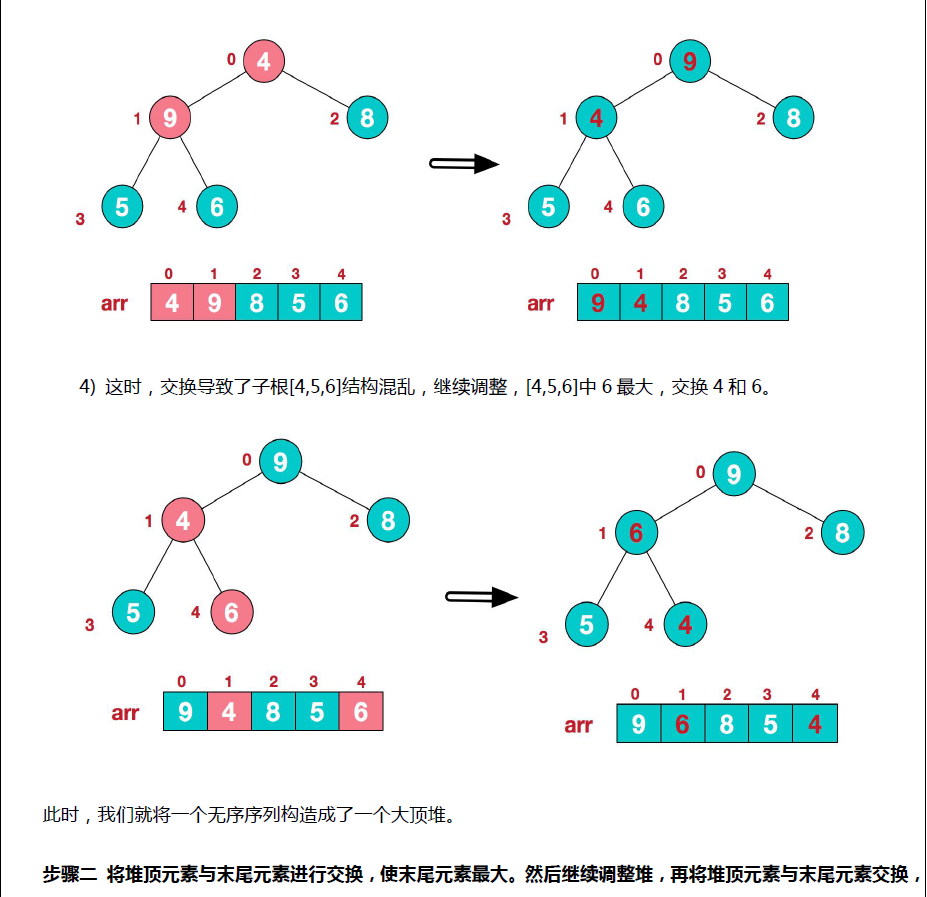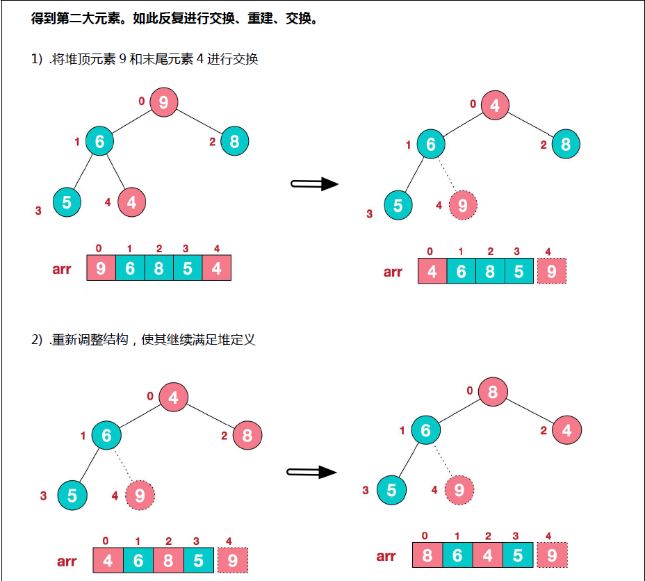 * 举例 int arr[] = {4, 6, 8, 5, 9}; => i = 1 => adjustHeap => 得到 {4, 9, 8, 5, 6}