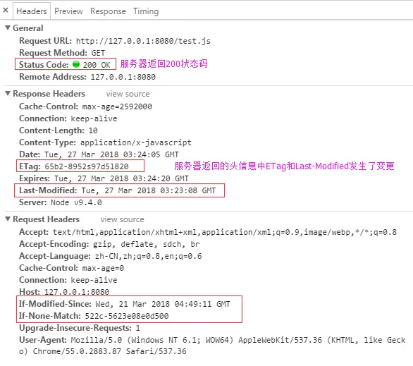 if-none-match: 属于 Request Headers,用来判断服务器资源是否与该传递的标识符不一致,如果一致则表示资源文件没有修改过,服务器将返回304状态码,让浏览器使用资源缓存。会覆盖if-modified-since的设置。