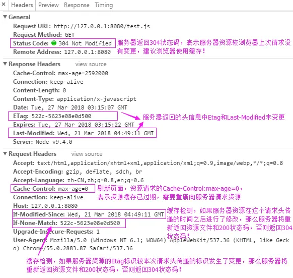 if-modified-since: 属于 Request Headers,用来判断服务器端资源是否在该传递的时间之后做了修改,如果没有修改那么服务器将返回304状态码,让浏览器使用资源缓存。