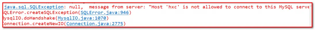 3、java.sql.SQLException: null, message from server: "Host 'hxc' is not allowed to connect to this MySQL server"