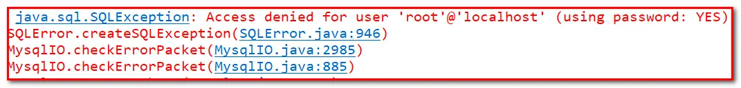 4、 java.sql.SQLException: Access denied for user 'root'@'localhost' (using password: YES)