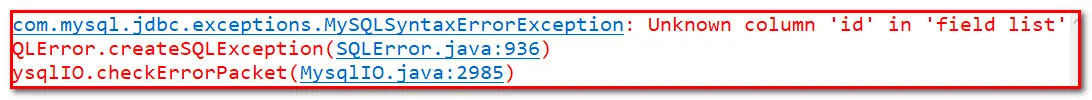 6、com.mysql.jdbc.exceptions.MySQLSyntaxErrorException: Unknown column 'id' in 'field list'