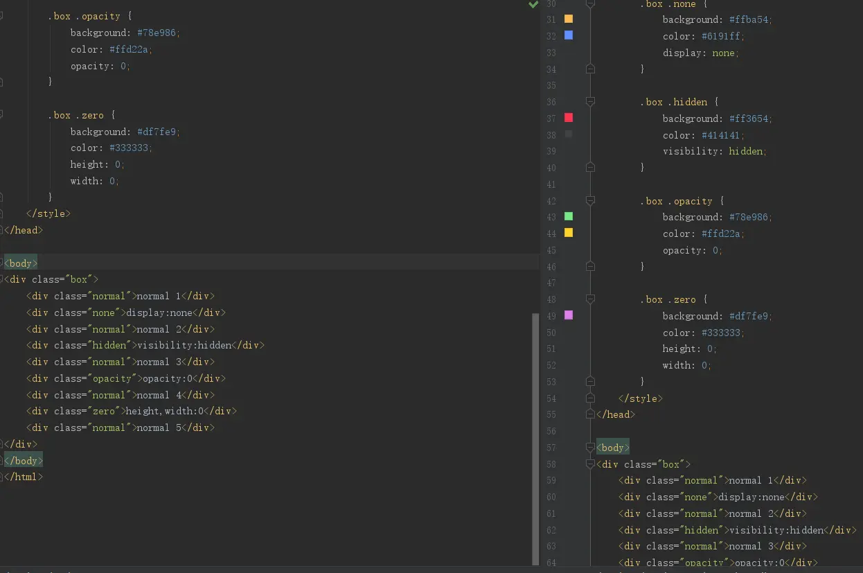 height,width:0元素隐藏,不占有原来的位置,但内容仍显示