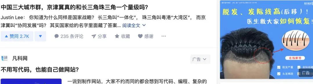 知乎的广告位配置,通过DSP推荐系统实现千人千面。