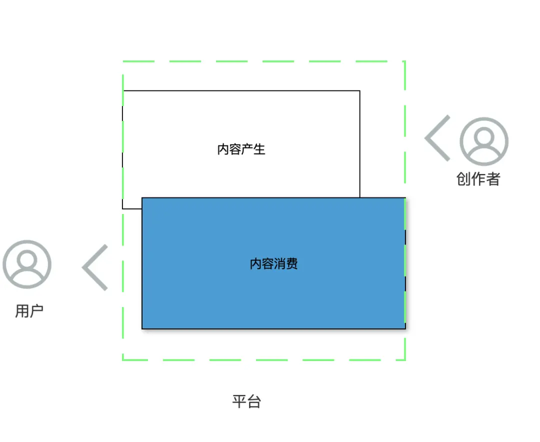 我采访的大部分童靴答案是运营驱动。毕竟内容由用户产生、内容由用户消费。只有运营才可以驱动着社区的内容闭环关系。如下为用户与内容的消费关系链。