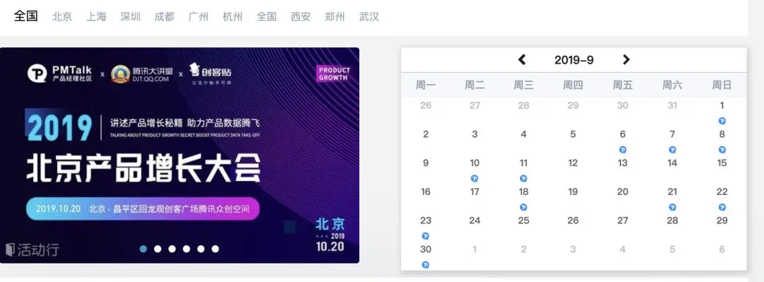 PMTalk产品经理社区每周的活动配置,增加了活动上架与下架。运营人员可以通过突出某个地区活动来做广告位配置