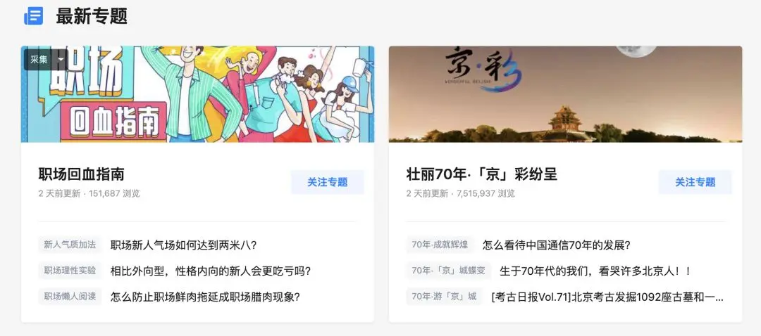 知乎的专题配置,挑选不同优质内容配一个腔调。