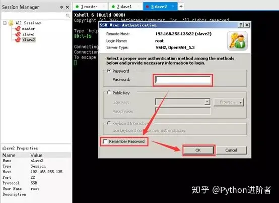 8、用户名一般是root,如果想让Xshell记住你的登录的话,记得勾选下图中的空白框框,如下图所示,尔后点击“OK”进行连接。