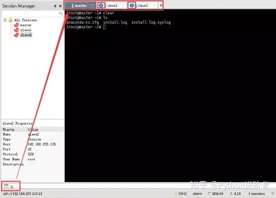 4、此时在左侧的“所有会话”目录下可以看到刚刚新建的slave2会话,如下图所示。