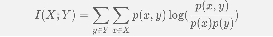 一般地,两个离散随机变量 X 和 Y 的互信息可以定义为: