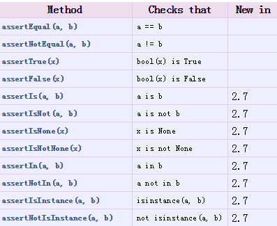 上面的仅仅是python语言自带的assert,在unittest中提供了非常丰富的断言,具体见如下的截图: