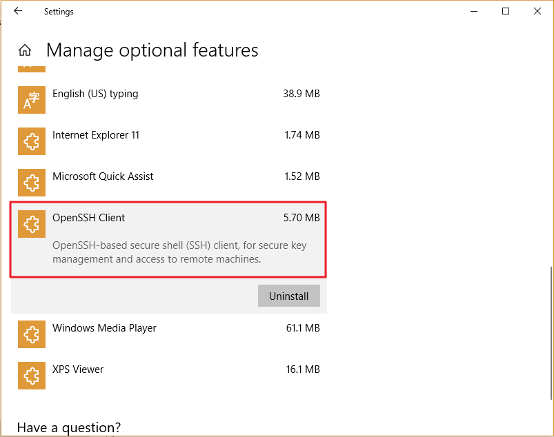 在设置页面中,转到应用程序,然后单击管理可选功能,向下滚动并检查是否已安装 OpenSSH Client。