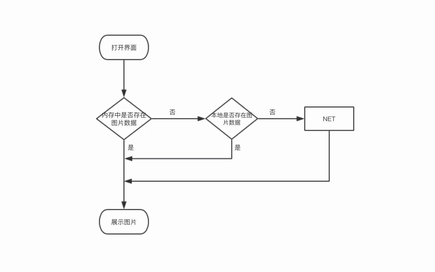 大多数的 App 都会用到图片,尤其一些咨询类的软件用的更多,如果每一次查看图片都是从网络下载,那用户的流量恐怕早早的就被耗完了。所以,可以对此进行优化:当用户第一次到某界面查看图片时,直接从网络获取图片,获取到图片之后,在内存和本地分别存一份。下次,再到该界面的时候,先从内存里面找,如果找到了,则直接显示,如果没找到,再从本地找,如果找到了,则直接显示,如果本地也没有找到,再去网络获取。