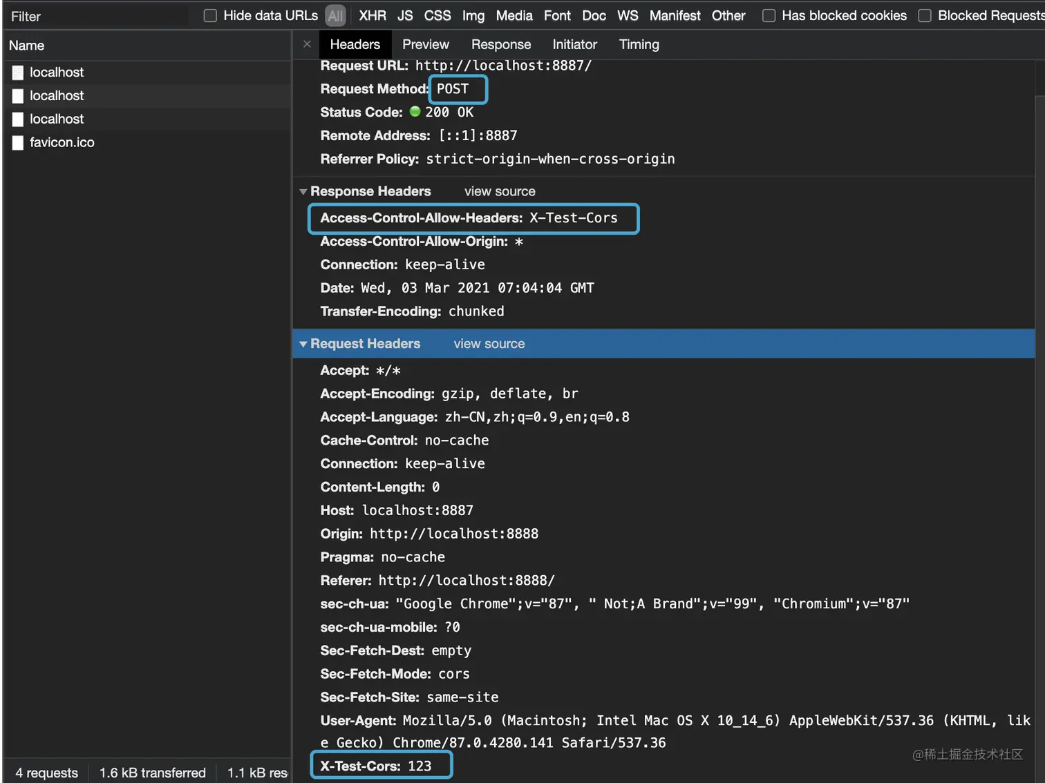 'Access-Control-Allow-Headers': 'X-Test-Cors',