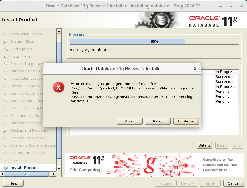 (2)/usr/local/oracle/product/11.2.0/dbhome_1/sysman/lib/ins_emagent.mk中的错误