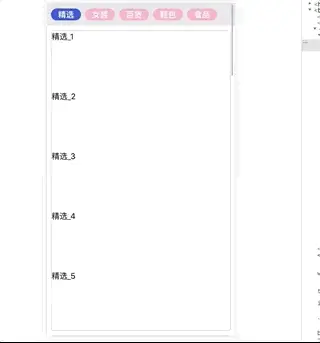 scrollTop在[[0, d2], [d2, d3], [d3, d4], [d4, d5], [d5]]的位置scrollIndex// util.js export function getScrollListIndex(distance, range) { // scrollIndex => 当前激活的 tab let scrollIndex = 0; let findScrollIndex = false; range.forEach((item, index) => { if (!findScrollIndex) { if (index === range.length - 1 && distance >= item[0]) { // 是否滚动到最后一个商品列表 scrollIndex = index; findScrollIndex = true; } else if(distance >= item[0] && distance < item[1]) { scrollIndex = index; findScrollIndex = true; } } }); return scrollIndex; } // index.js componentDidMount() { // 这里用 setTimeout 是因为react 中 componentDidMount 钩子内 dom 虽然加载完了,但是样式还未完全加载上,因此需要使用这样一个 hack,加载顺序 js,css/scss setTimeout(() => { const tabListElementArr = Object.keys(TAB_LIST_ID).map(key => document.getElementById(TAB_LIST_ID[key]) ); this.listHeightRange = getHeightRange(tabListElementArr); }, 0); window.addEventListener('scroll', this.handScroll); } // HEADER_PADDING_HEIGHT 第一个商品列表顶部距离文档顶部距离,此时文档未滚动 handScroll = () => { const scrollTop = getDocumentScrollTop(); const listIndex = getScrollListIndex( scrollTop + HEADER_PADDING_HEIGHT, this.listHeightRange ); listIndex !== this.state.activeTabIndex && this.setState({ activeTabIndex: listIndex }); };到此时,tab列表与商品列表关联滚动的功能已经基本实现,看图😬