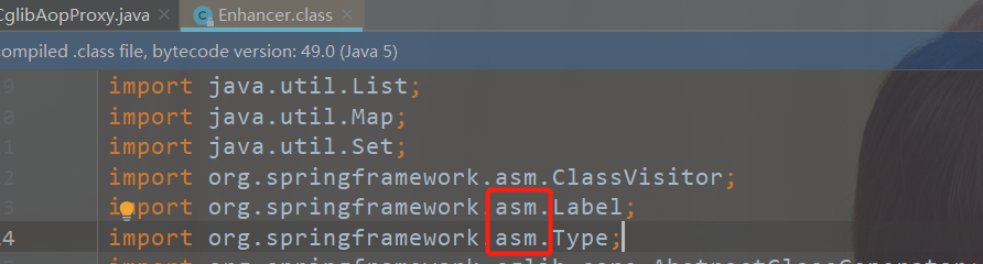 cglib使用asm操作字节码完成对代理类的创建 主要通过集成目标对象,然后完成重写,再操作字节码
