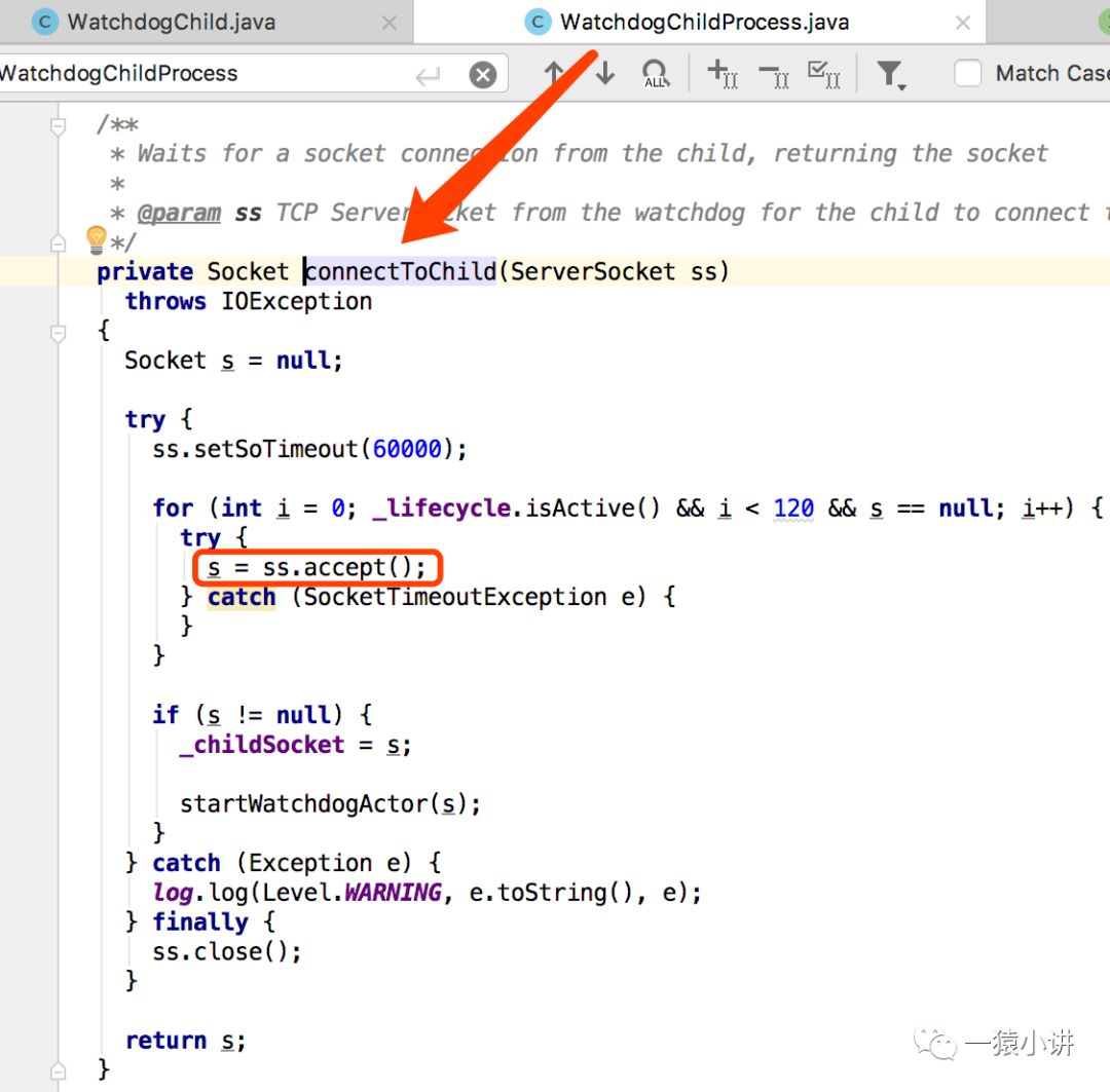 至此,我们知道 WatchdogManager 会创建 WatchdogTask 任务,用于创建WatchdogChildProcess 对象,此对象会触发启动 Resin 进程,并提供 socket 通讯服务。