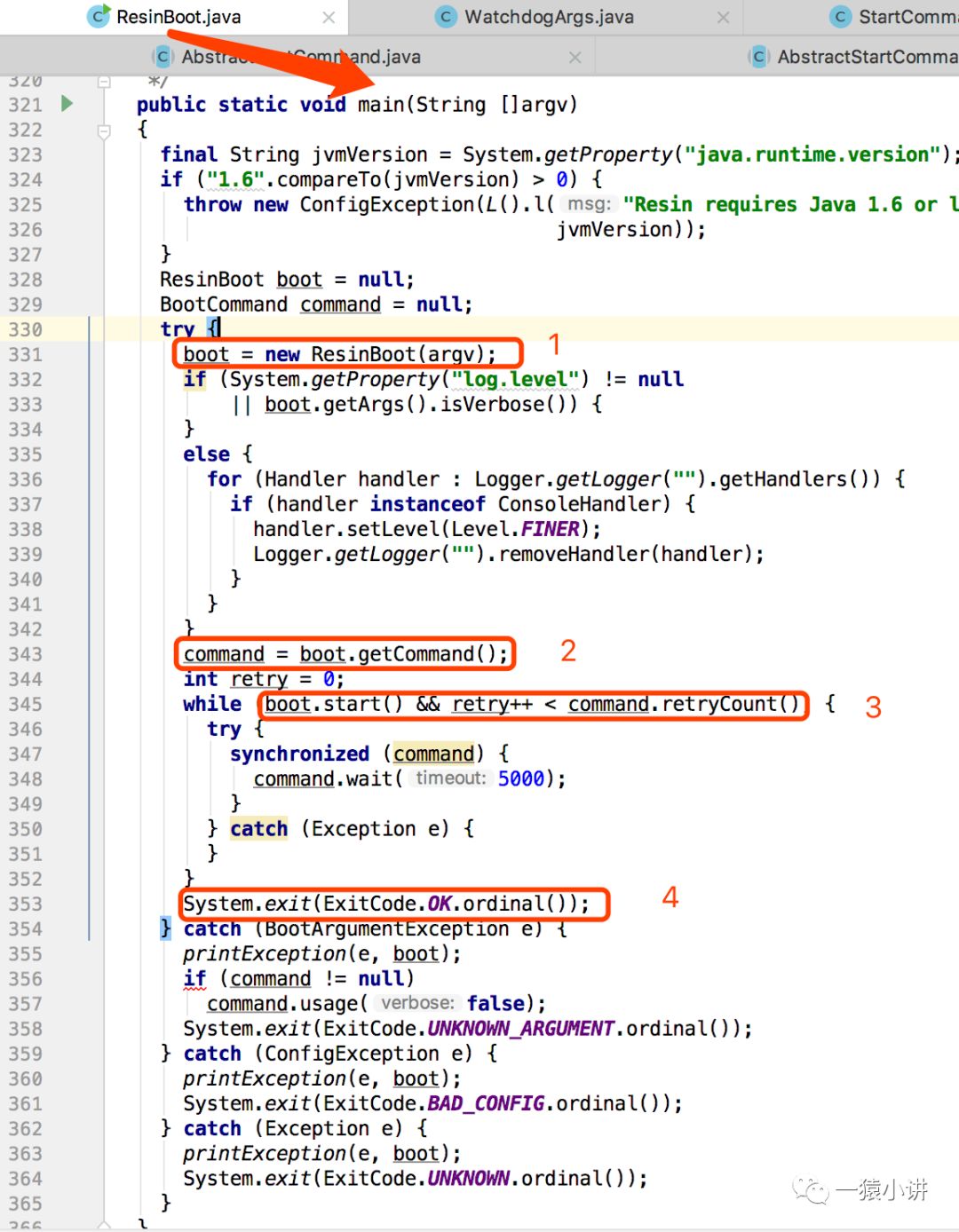 ResinBoot 的 main 函数是 Resin 应用服务器入口,大概流程如下: