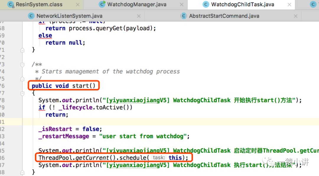 其中 WatchdogChildTask 的 start 方法很简单,就是起了一个线程开始跑任务。
