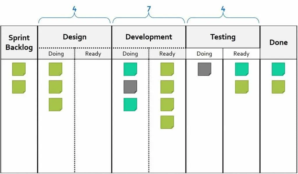 在制品限制值不是具体可计算的,需要长期经验积累和磨合才能定下一个合适的值. 值越小,成员可以更专注于当前的事情,增强成员之间的协作。值越大,可以处理的事情更多,任务调度会更为灵活。
