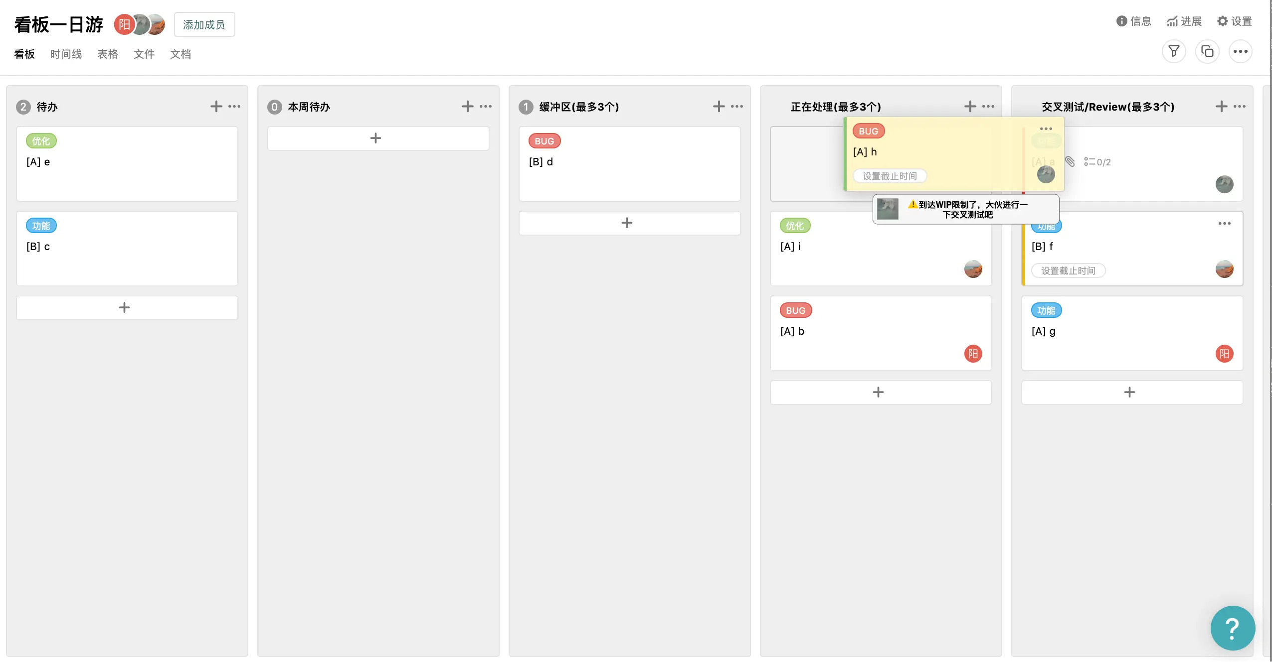 下一节会介绍,我会介绍通过设置在制品数量(带宽),让看板更容易地暴露瓶颈.