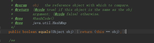 文章类中有路径、标题两个属性,在这个类中我们并没有重写 equals 和 hashcode 方法,所以这里会使用超类 Object 中的 equals 和 hashcode 方法,为了防止你没有看过 Object 类中的 equals 和 hashcode 方法,我们先一起来看一下 Object 的类中的 equals 和 hashcode 方法: