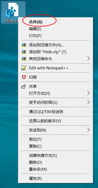 3、修改记事本名字为Hide.reg