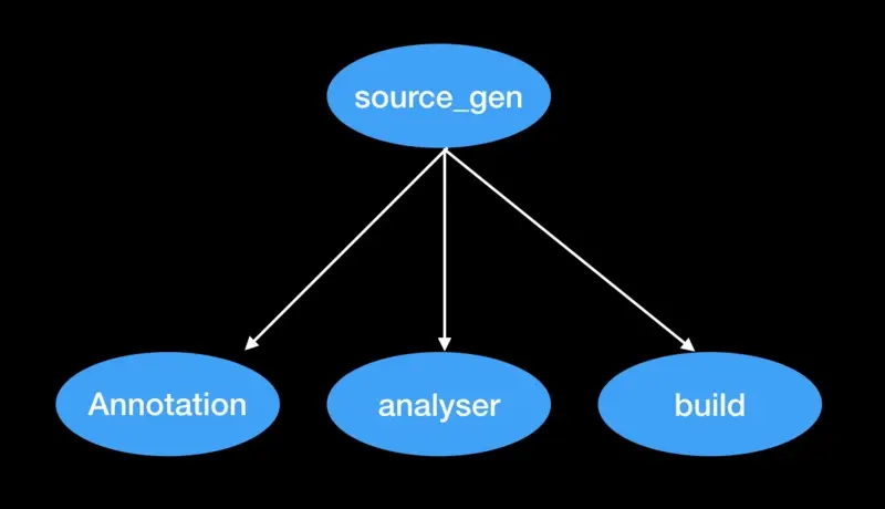 source_gen是封装自build和 analyzer,并在此基础上提供友好的api封装。build是一个提供构建控制的库,analyzer是提供dart语法静态分析功能的库,source_gen将其整合便可以实现一套基于注解的代码生成工具。