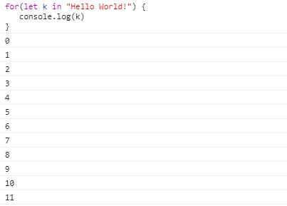 for(let k in "Hello World!") {