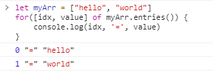 for([idx, value] of myArr.entries()) {