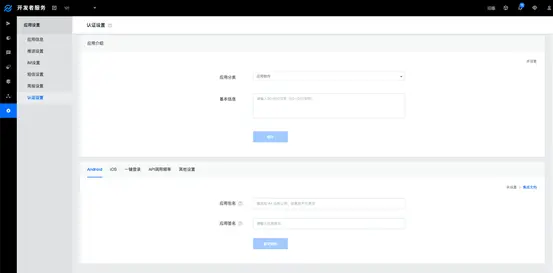 2. 在极光开发者平台创建应用后,在认证设置页面填写应用包名、应用签名、加密公钥等信息。(PS:创建应用后会有一个 appkey,后面集成需要用到。)